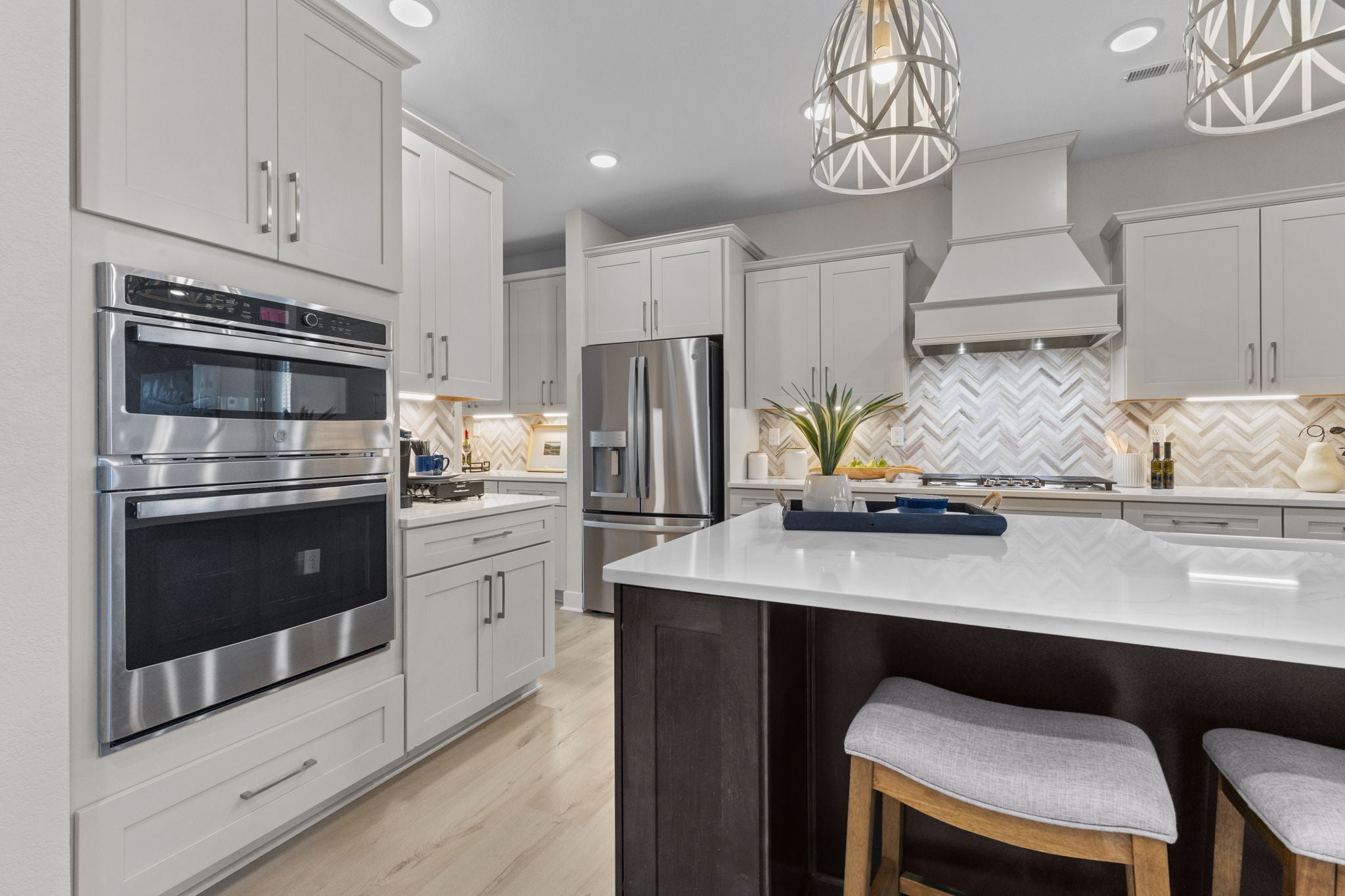 These 2,619+ square feet of space are for any family on the go during the week and for those who love to lounge on the weekend. The Persimmon plan offers a spacious lifestyle with the option of four to five bedrooms. The open-concept kitchen and great room create an extensive floor plan broken up with a kitchen island and breakfast nook. Plus, with patio access connected (or an optional covered rear porch), who says you can't enjoy your morning coffee outside? Make the kitchen your own with our optional gourmet kitchen island or by adding French doors to the dining room.
